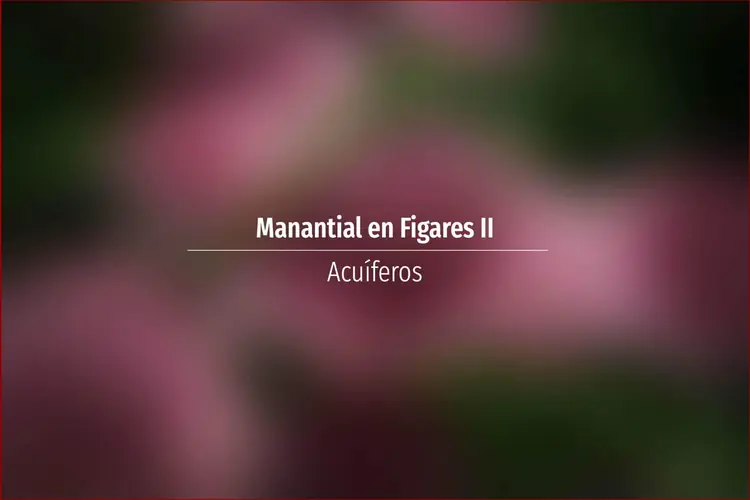 Manantial en Figares II. Acuífero en Asturias: Cuenca: Norte Unidad Hidrogeológica: Villaviciosa Sistema acuifero: Unidad mesozoica Gijón-Villaviciosa Cota: 330 Naturaleza: Manantial Uso: Ganadería Perímetro: No se sabe Nota: ..